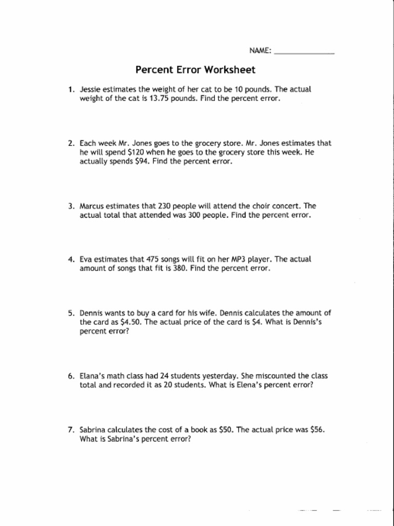Percent Of Error Worksheet With Answers Printable And Enjoyable Learning