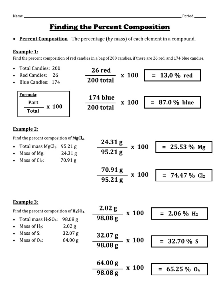 Chemistry Percent Composition Worksheet Printable Calendars AT A GLANCE