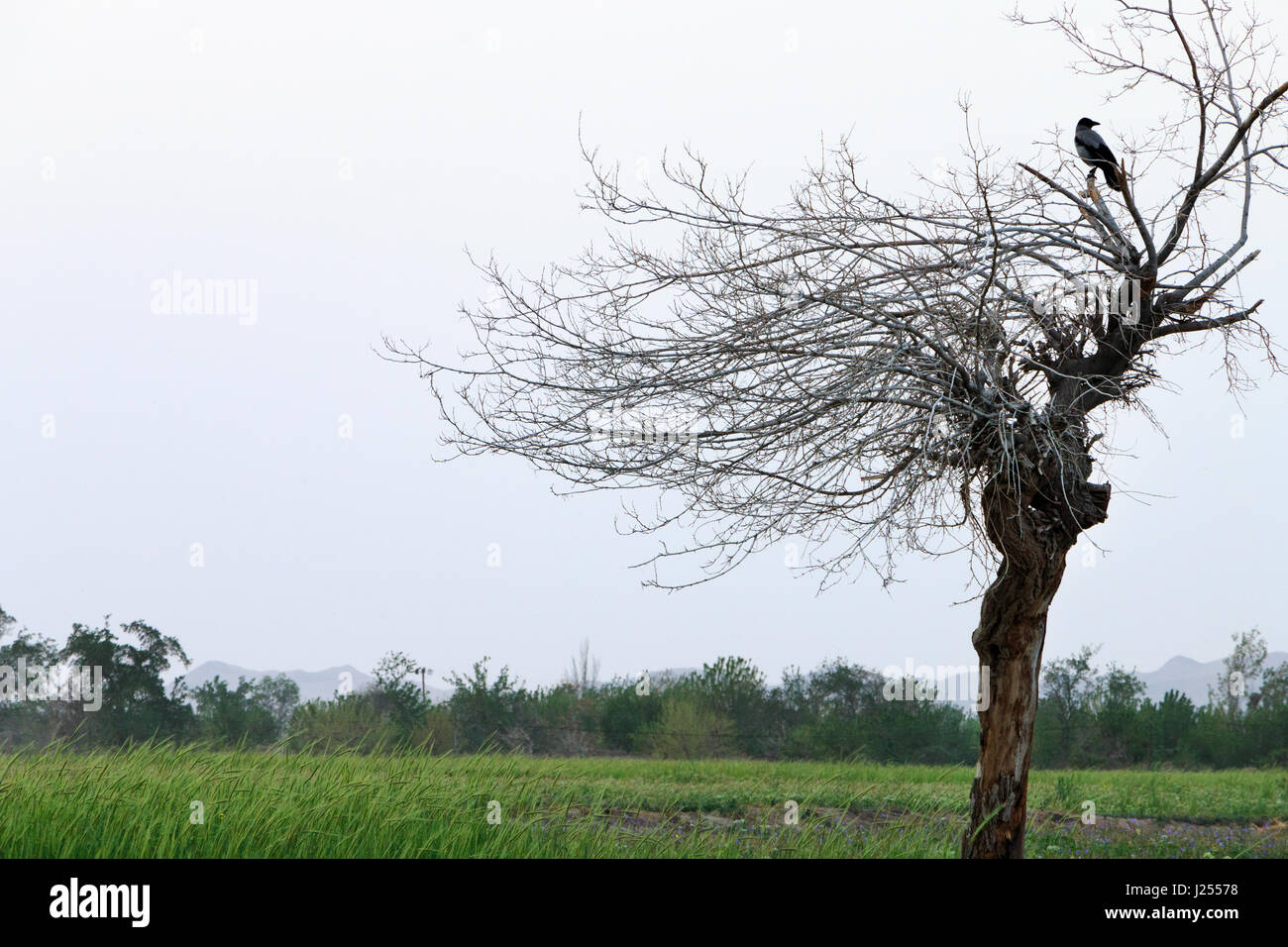 Vicious Vulture Perched on a Tree with Its Wings Spread Stock Image