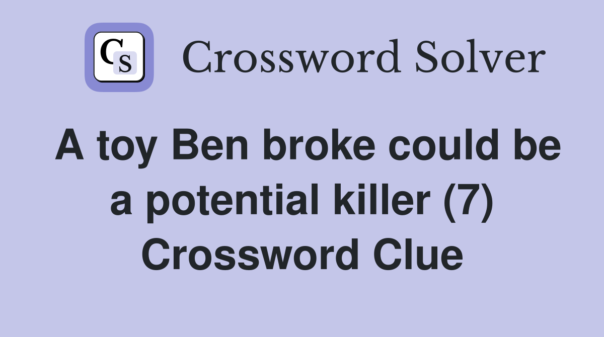 A toy Ben broke could be a potential killer (7) Crossword Clue