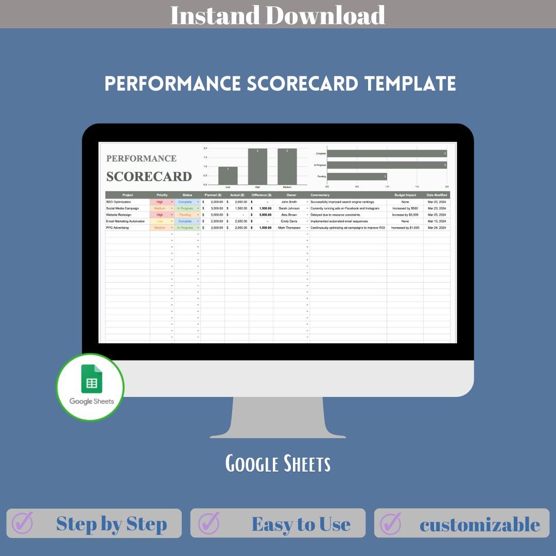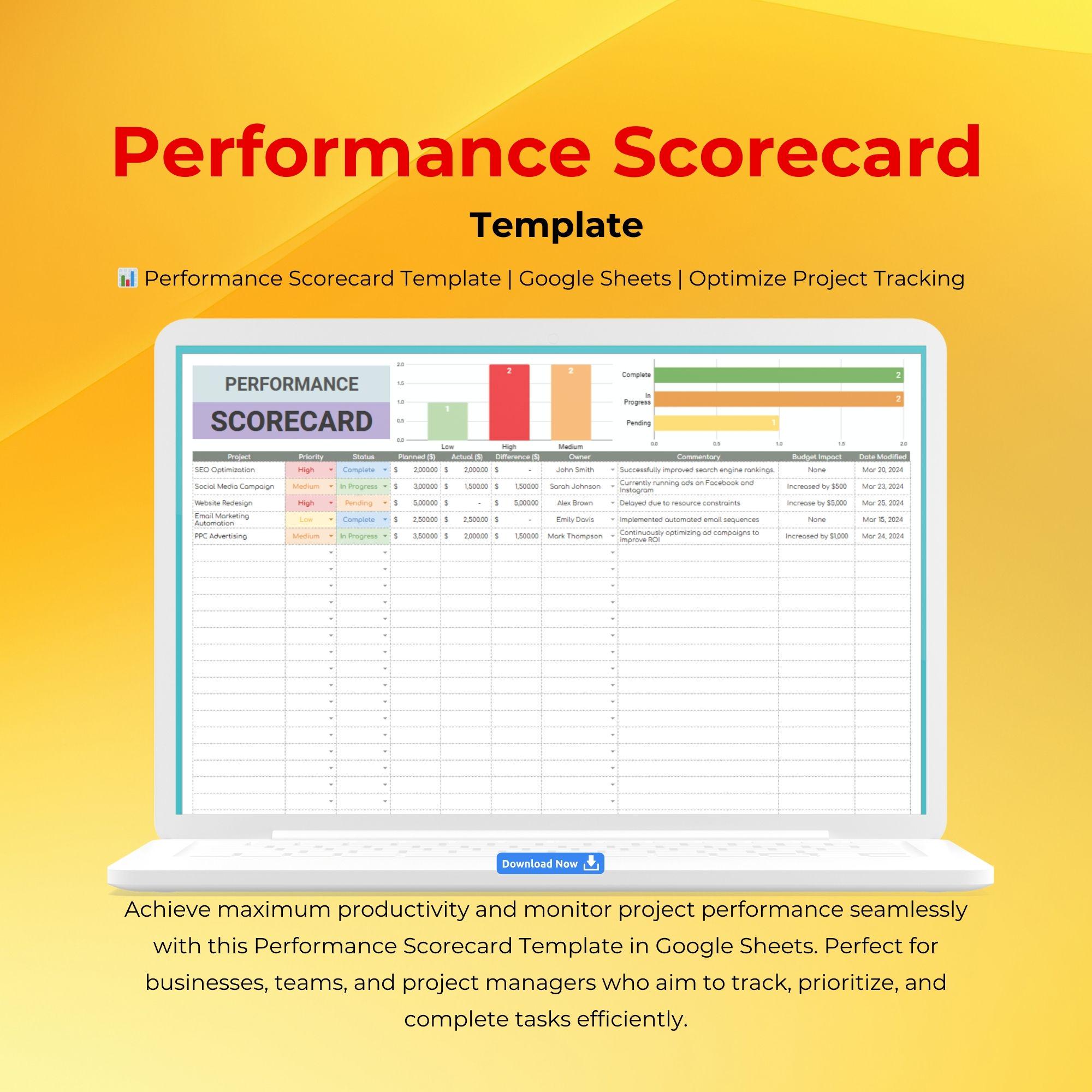 Performance Scorecard Template Editable Google Sheets Easy to Use