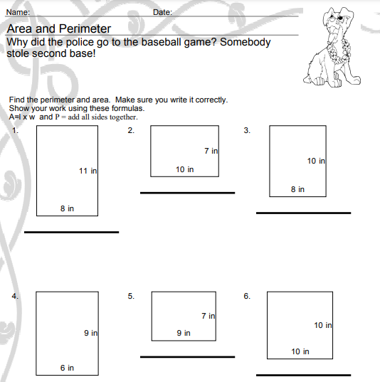 Area And Perimeter Worksheets 3rd Grade Printable Word Searches