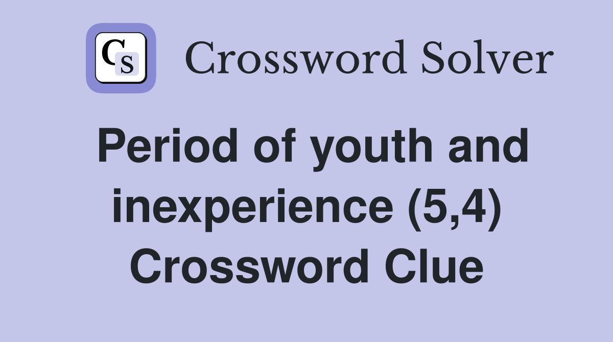 Period of youth and inexperience (5 4) Crossword Clue Answers