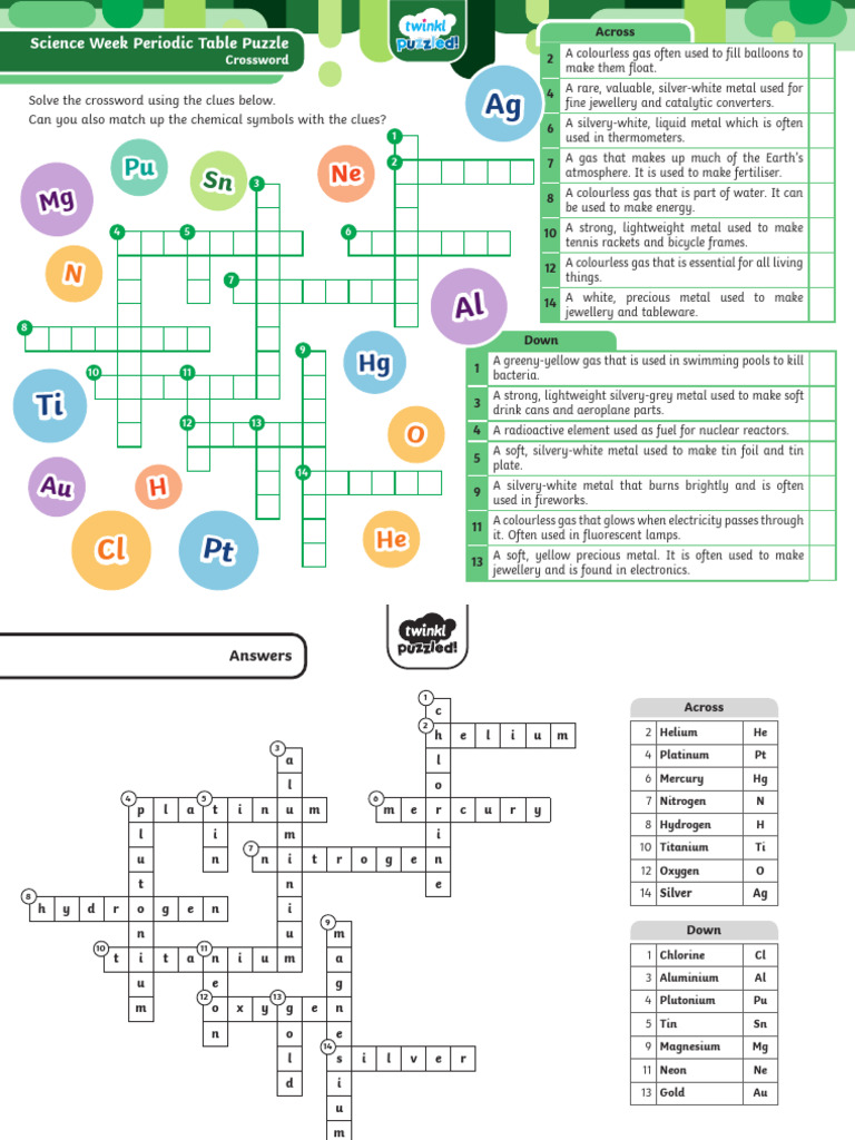 Periodic Table Puzzle Crossword science Week printable Periodic Table