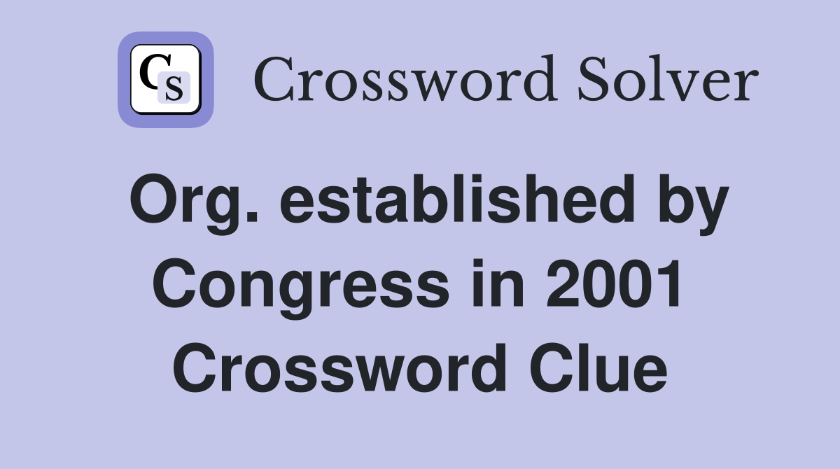 Org established by Congress in 2001 Crossword Clue Answers