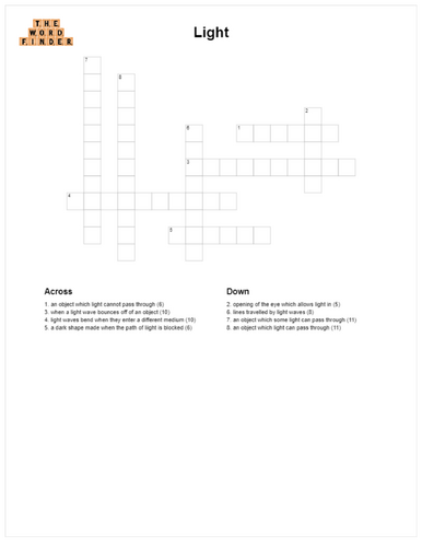 Light Crossword (l #39 enseignant a fait) Twinkl