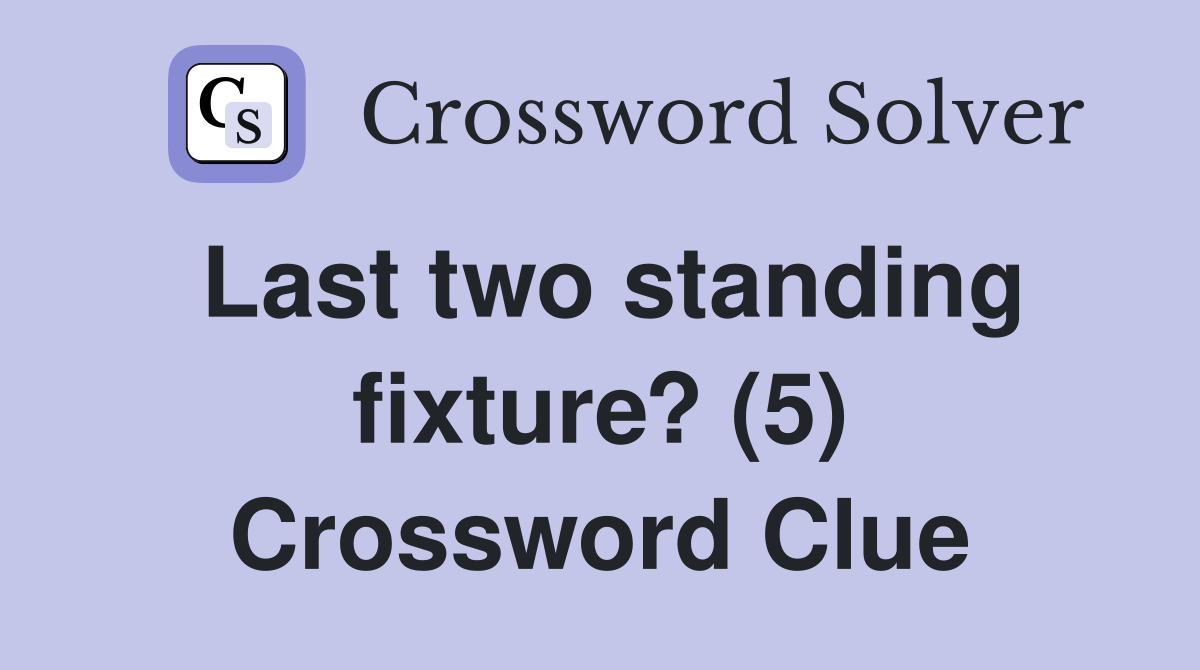 Last two standing fixture? (5) Crossword Clue Answers Crossword Solver