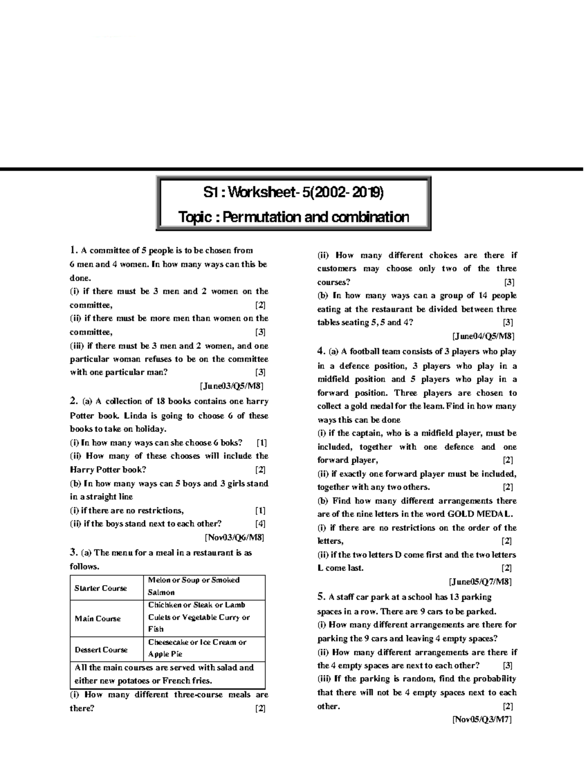 Worksheet 5 Permutation and combination Samim #39 s Tutorial (Ensures