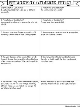 Permutations and Combinations Notes and Worksheets Lindsay Bowden