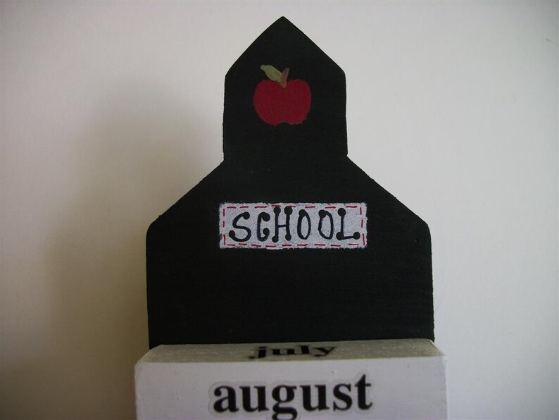 School Calendar Perpetual Wood Block Schoolhouse Teacher Gift Etsy