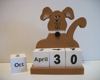 Dog Calendar Perpetual Wood Block Brown by WoodnDoodads on Etsy