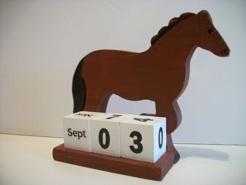 Horse Calendar Perpetual Wood Block Brown Horse Decor Etsy
