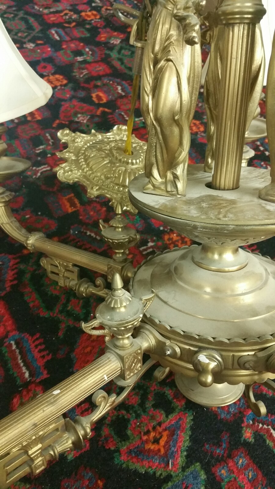 19th Century French Gilded Bronze Figural Chandelier Five Light Lamp