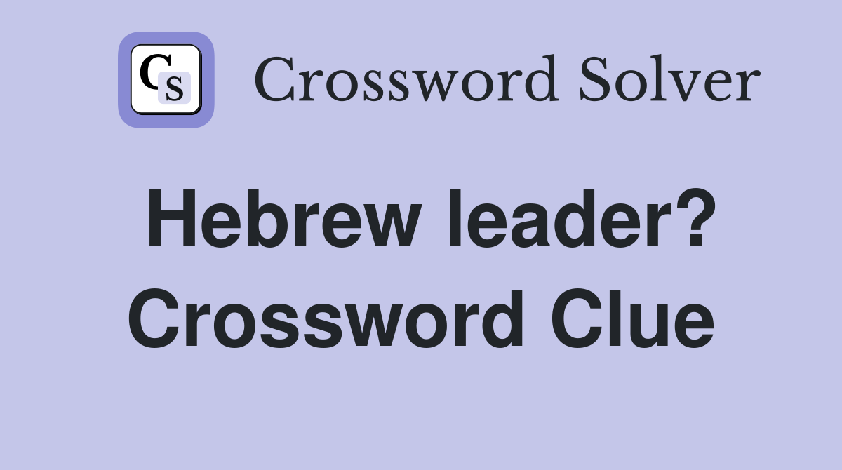 Hebrew leader? Crossword Clue Answers Crossword Solver
