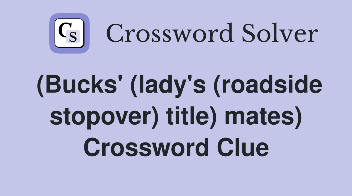 (Bucks #39 (lady #39 s (roadside stopover) title) mates) Crossword Clue