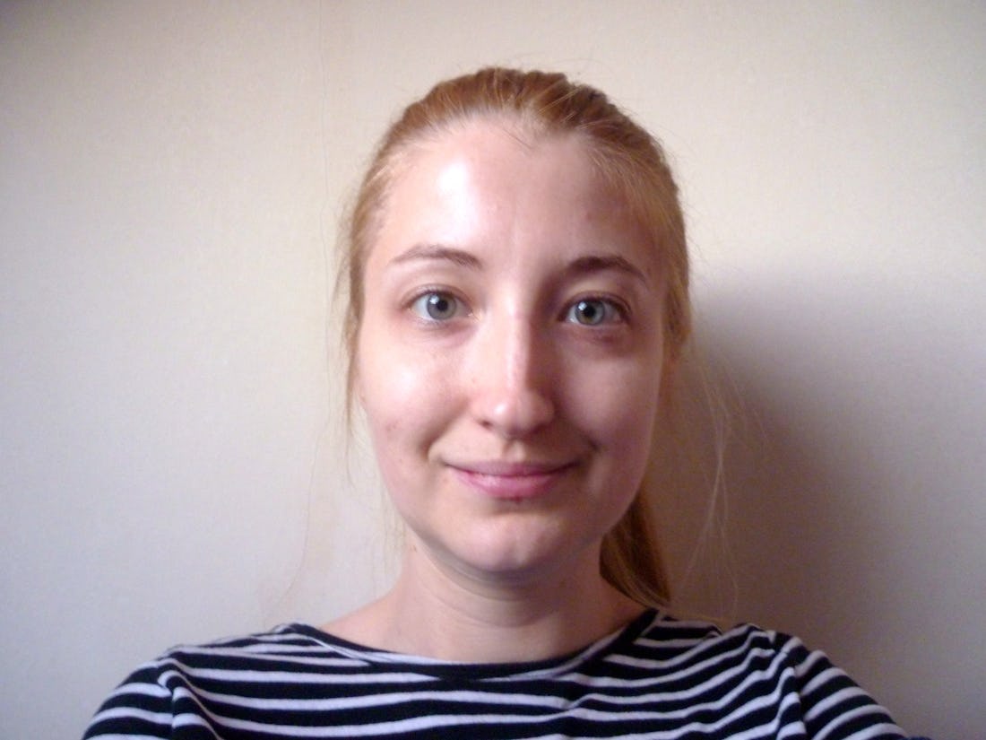 Portrait of Smiling Young Girl without Makeup with Long Brown Hair