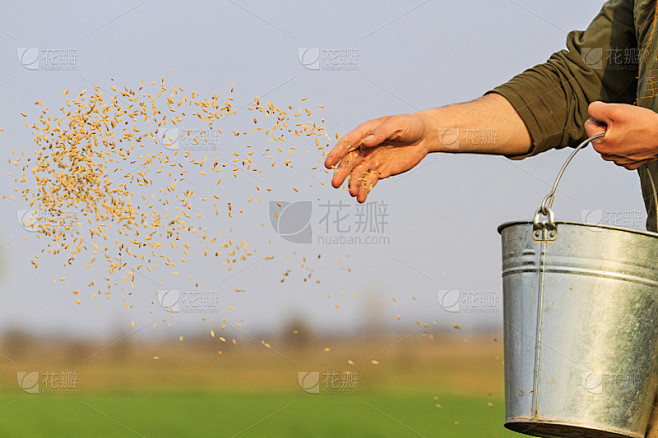 人把粮食撒在地上