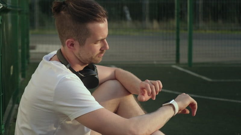 Typing Smartwatch Basketball Court Sitting by Polina Borisova