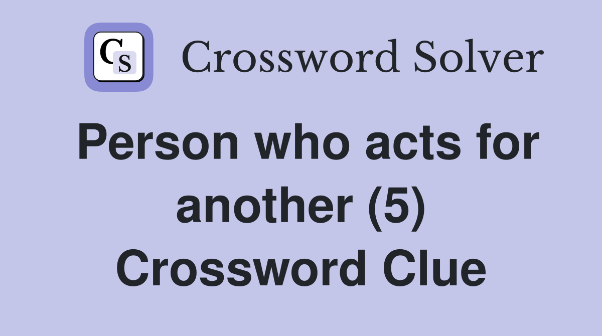 Person who acts for another (5) Crossword Clue Answers Crossword Solver