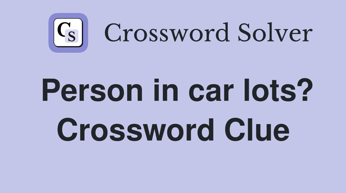 Person in car lots? Crossword Clue Answers Crossword Solver