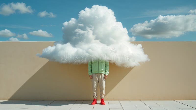 Person Standing with Head in the Clouds Symbolizing Dreaming and