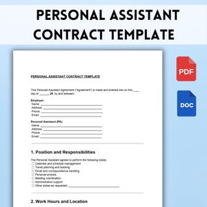 Personal Assistant Contract Template Editable DOC PDF Employment