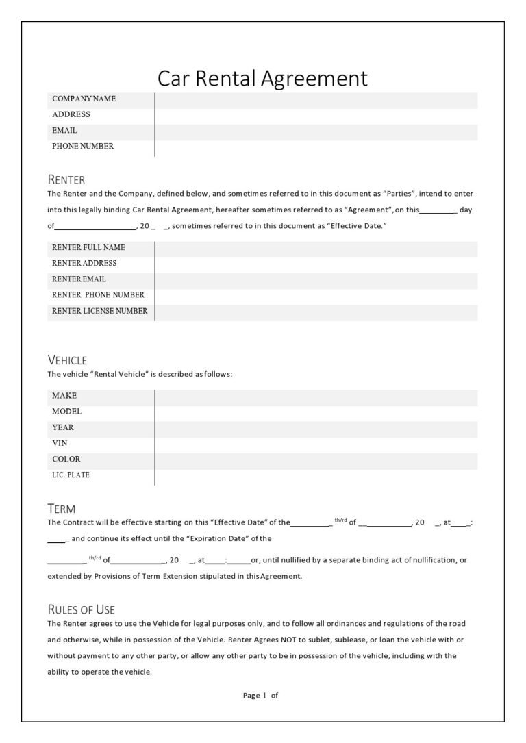 Personal Car Rental Agreement Template Google Docs Word Apple Pages