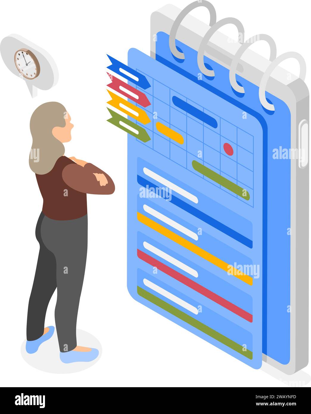 Isometric personal time management Business woman planning month on