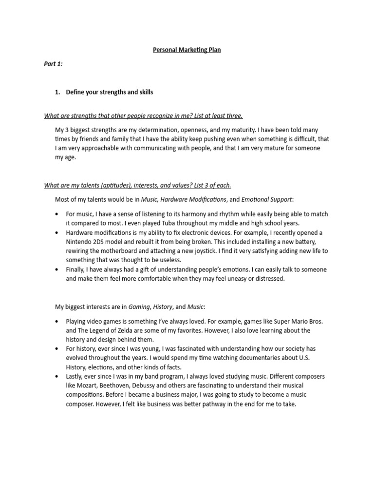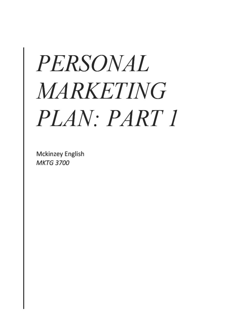 Part 1 Personal Marketing Plan PDF Marketing Knowledge