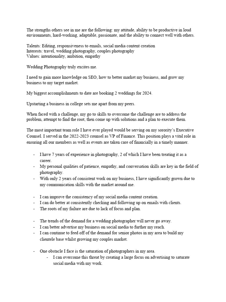 personal marketing plan PDF Wedding Photography Social Media