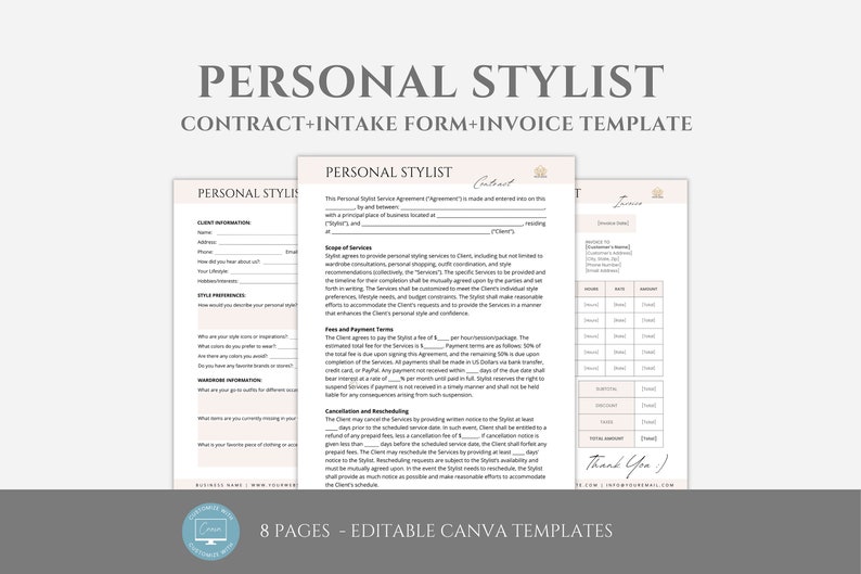 Personal Stylist Contract Canva Template Editable / Agreement Etsy