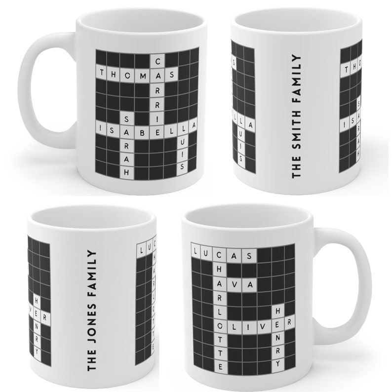 Personalized Crossword Puzzle Mug Custom Family Name Gift Unique Coffee