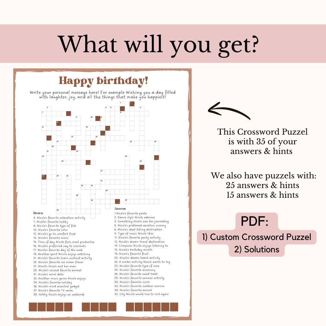 Printable CUSTOM CROSSWORD Puzzle Birthday Gift PDF Crossword
