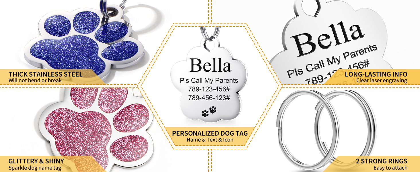GISUREY Dog Tags Personalized for Pets Cute Paw Glitter Dog Name Tags