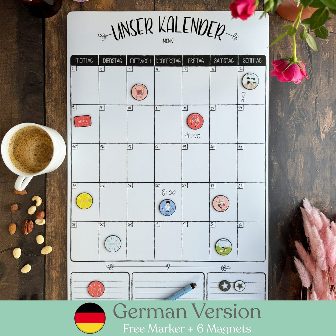Monthly Magnetic Family Calendar German Version Personalized With