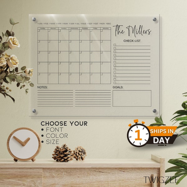 Acrylic Family Planner Personalized Monthly Calendar Dry Erase