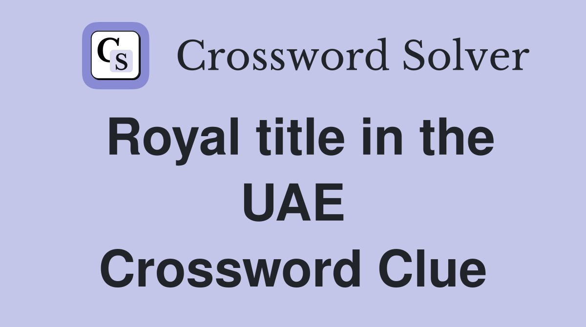 Royal title in the UAE Crossword Clue Answers Crossword Solver