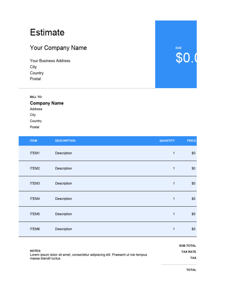 Estimate Templates Free Download Customize
