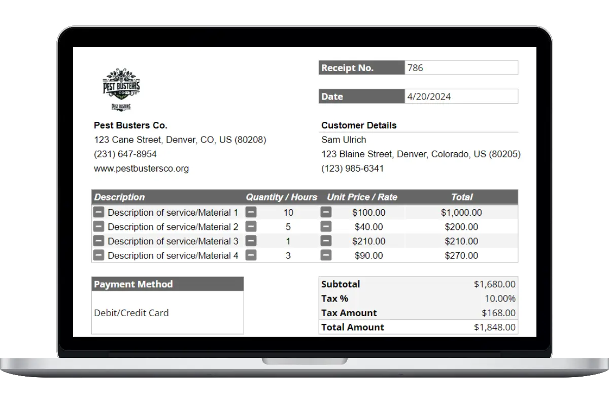 Pest Control Receipt Template ( Free PDF Download) FieldRoutes