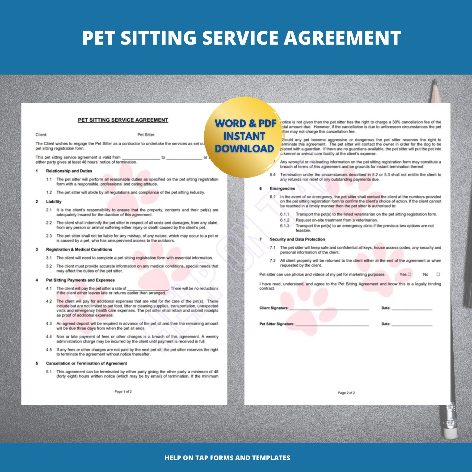 Pet Sitting Service Agreement Pet Sitting Business Forms Pet Sitting