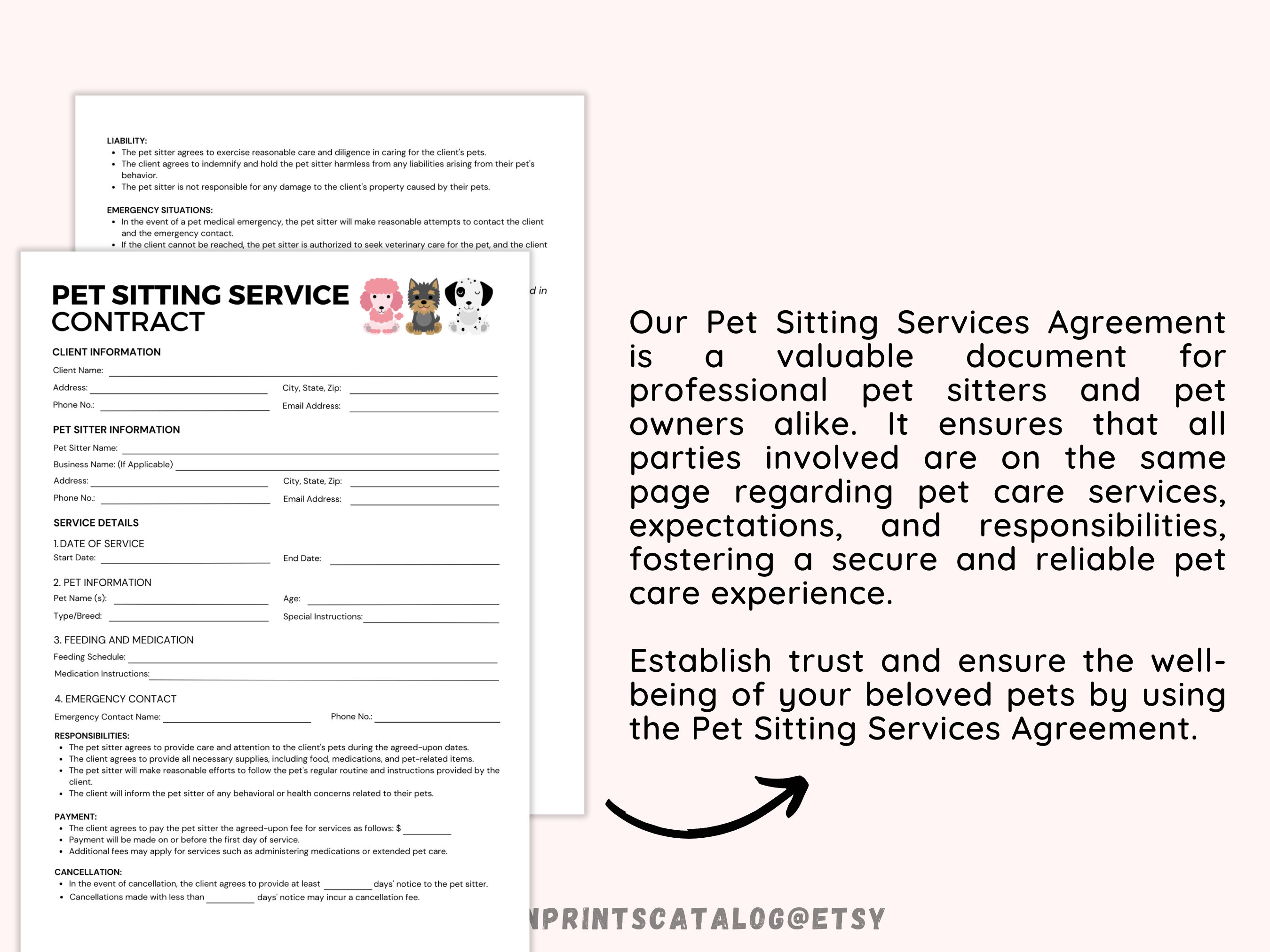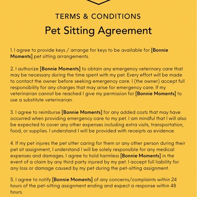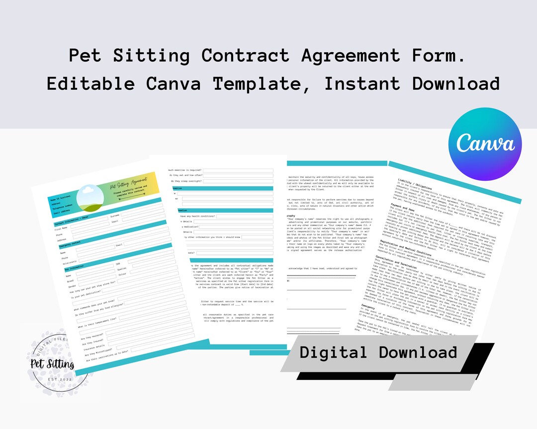 Pet Sitting Contract Agreement Form Editable Canva Template Instant