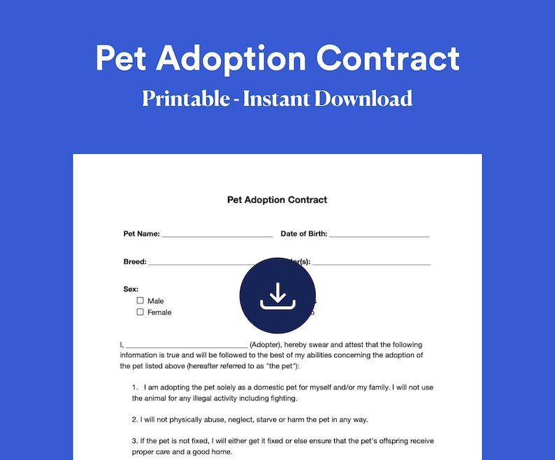 Pet Adoption Contract / Puppy Adoption / Cat / Dog Agreement / Pet Form