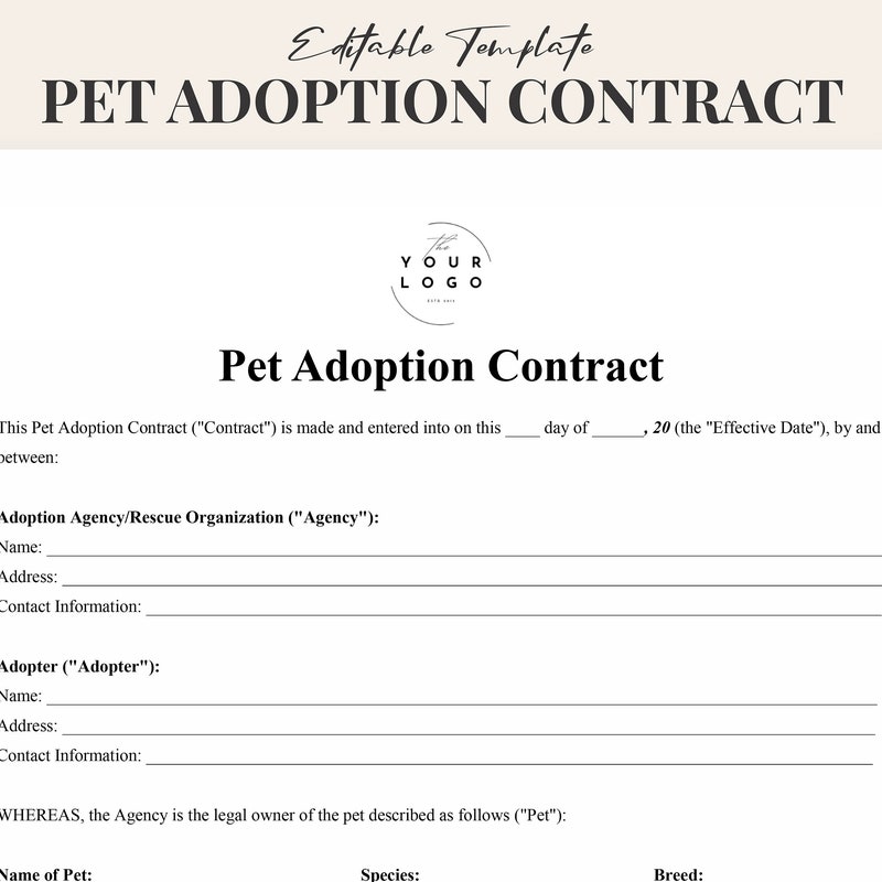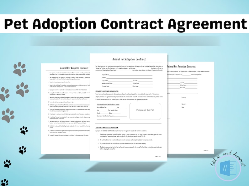 Pet Adoption Contract Agreement Editable in Word PDF Etsy