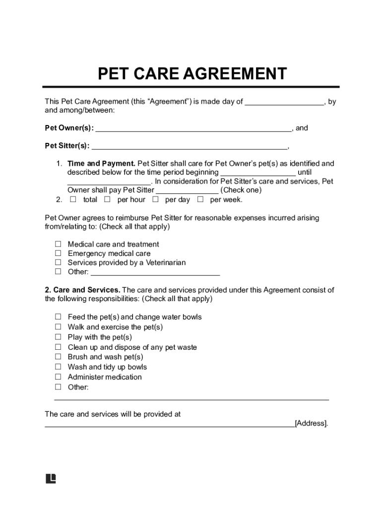 Editable Pet Sitting Agreement Template Professional Pet Care
