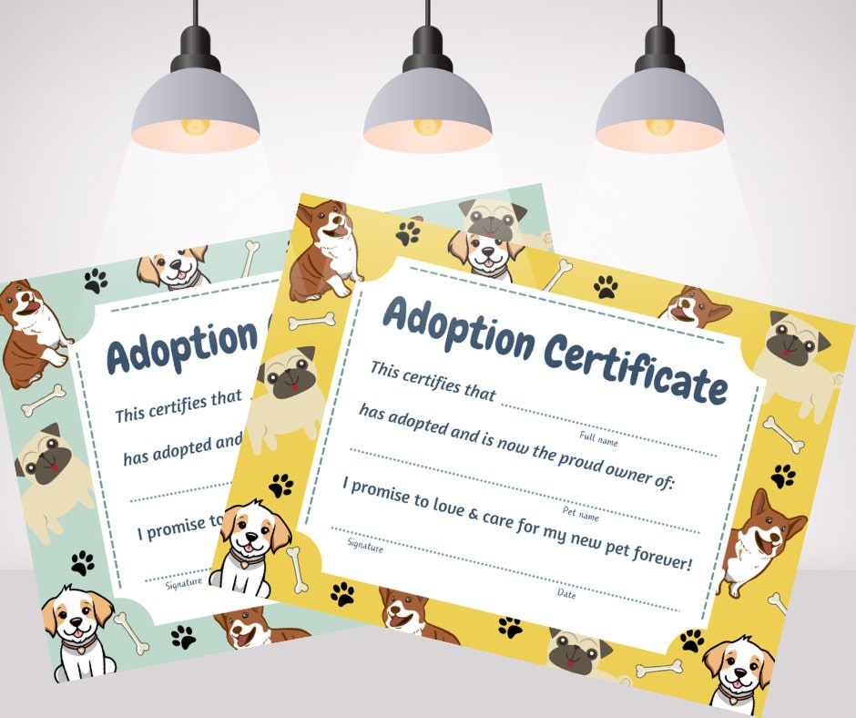 Pet Dog Adoption Certificates Printable PDF Editable Template Animal