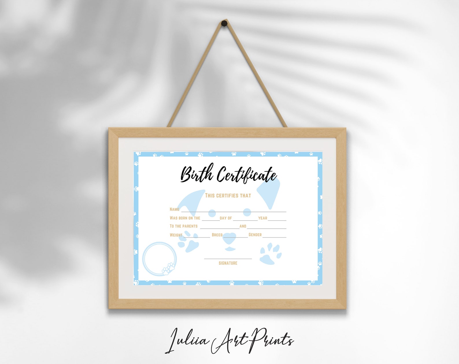 Pet Birth Certificate Printable Dog Birth Certificate Puppy Etsy