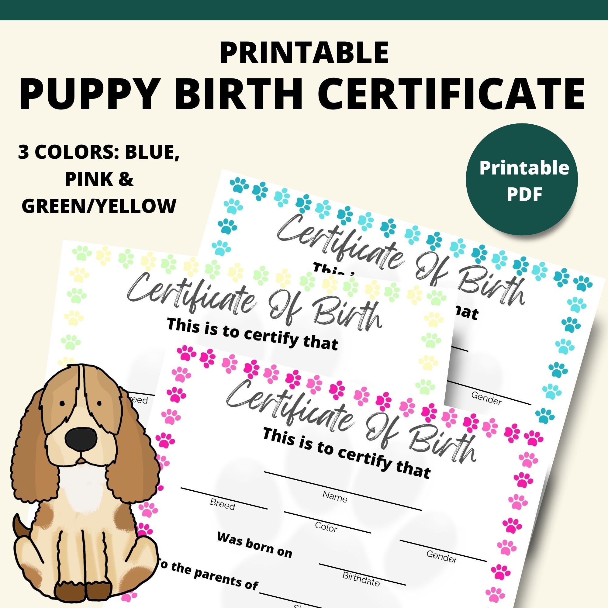 Printable Puppy Birth Certificate Dog Birth Certificate Pet Birth