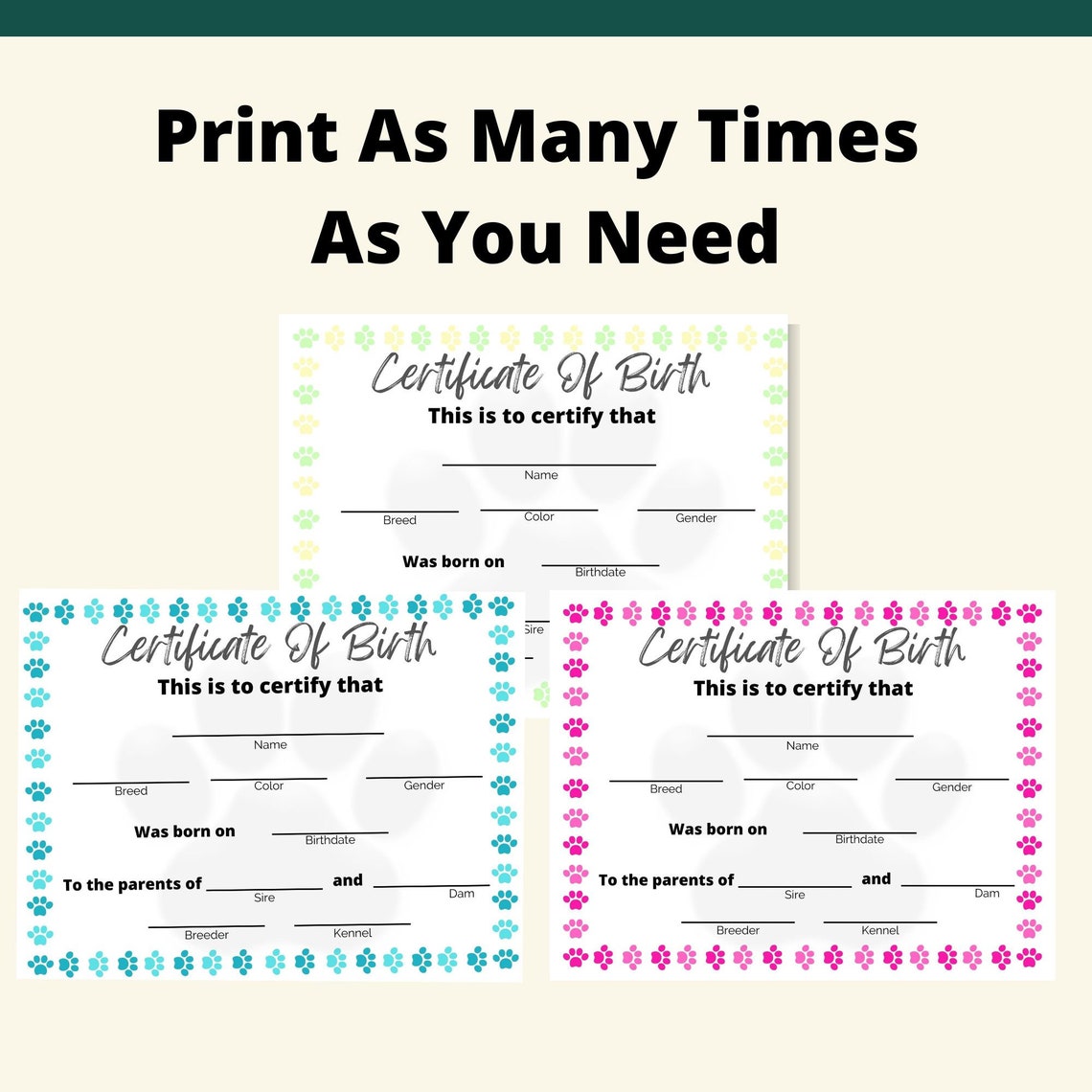 Pet Birth Certificate Printable Certificate of Birth for Your New Pet