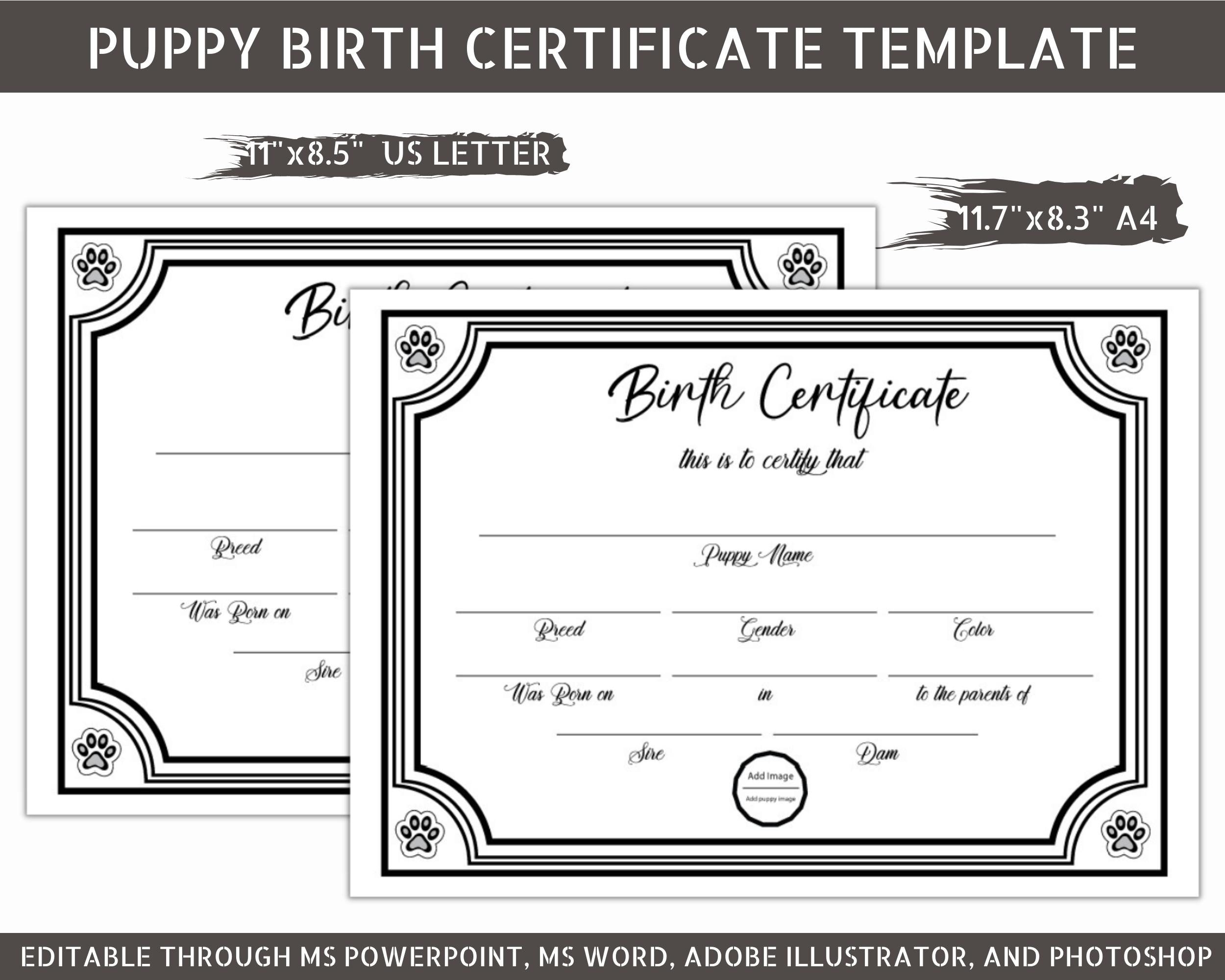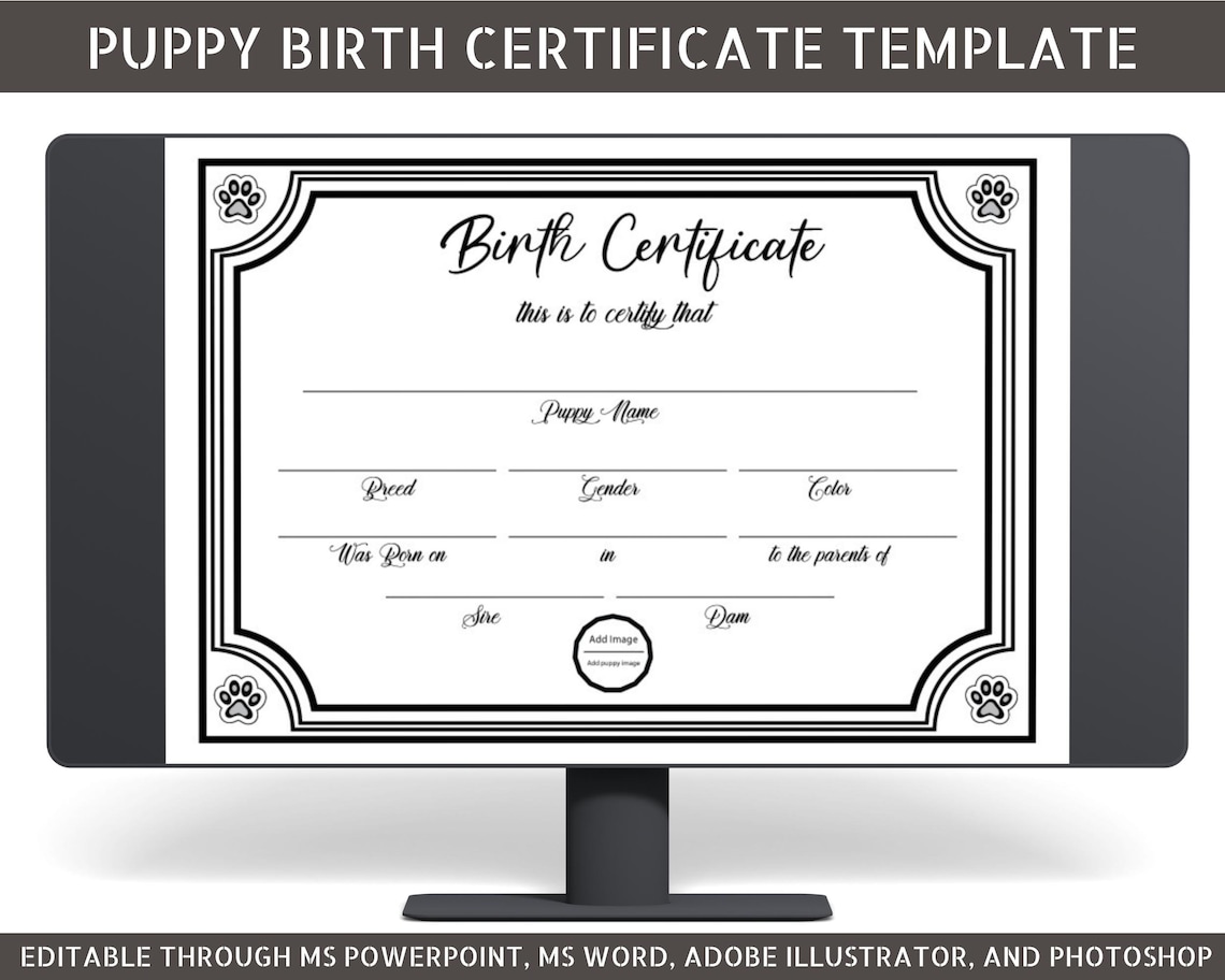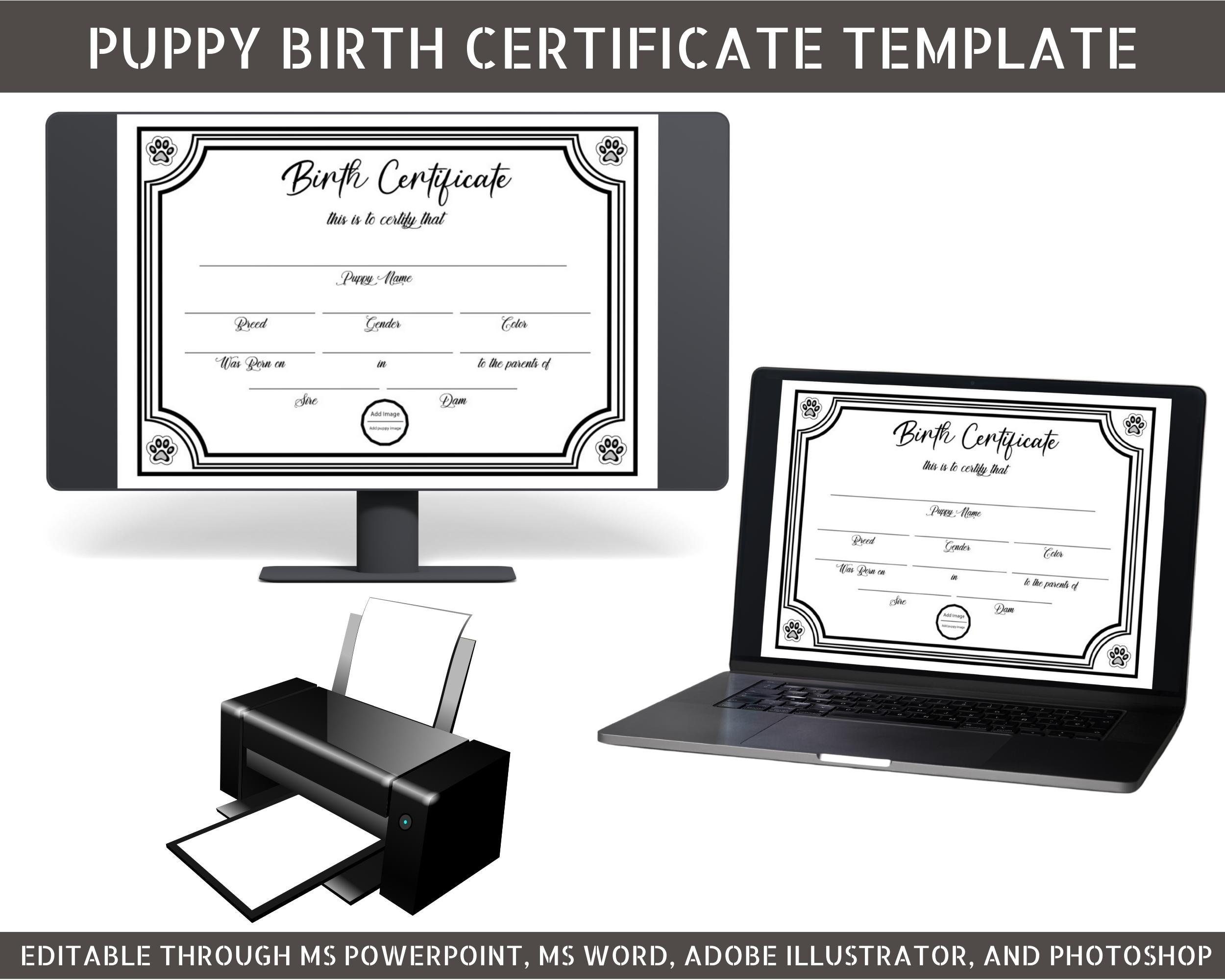 Puppy Birth Certificate Instant Download Printable Pet Birth