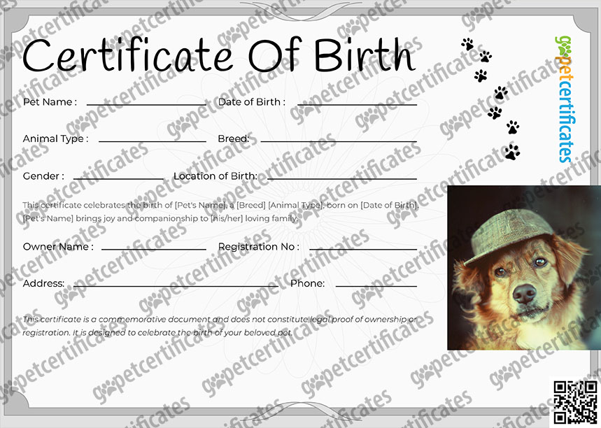 Pet Birth Certificate PDF
